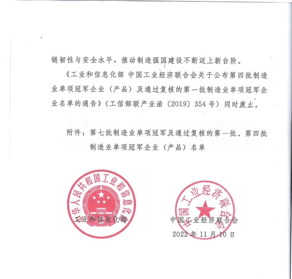 日前,工業(yè)和信息化部、中國工業(yè)經(jīng)濟聯(lián)合會發(fā)布了《關(guān)于印發(fā)第七批制造業(yè)單項冠軍及通過復(fù)核的第一