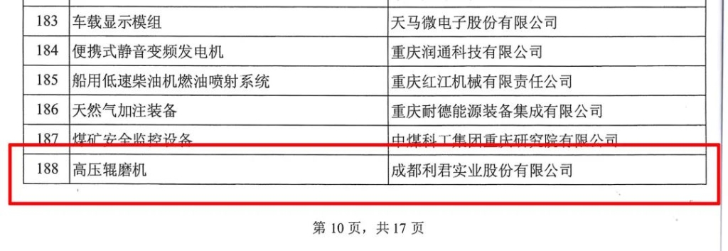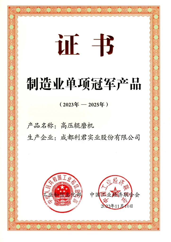 “高壓輥磨機”入選為第七批制造業(yè)單項冠軍產(chǎn)品